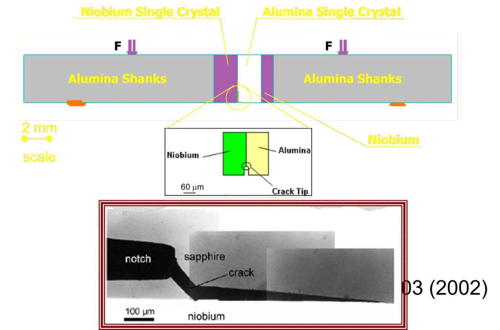 Metal/ceramic interface fracture of niobium/alumina bicrystal interface had been studied at Max-Planck Institute for metal research, Stuttgart, Germany since last three decades. It was found that fracture energy of the system changes in some case by 20 times for different orientations of the bicrystal specimen. In this work a length scale bridging procedure was proposed to simulate the interface fracture of niobium/alumina bicrystal specimens.